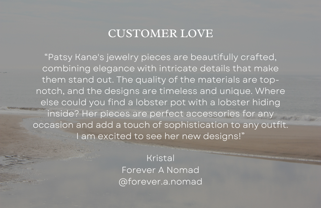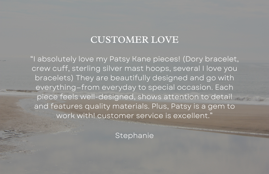 Patsy Kane | Nautical is a woman-owned boutique jewelry design and manufacturing company rooted in the heart of New England. What began as a creative endeavor has grown into a brand celebrated for its classic maritime-inspired pieces, crafted from a variety of metals and materials. We pride ourselves on producing the majority of our products right here in New England, ensuring authenticity and quality in every piece.