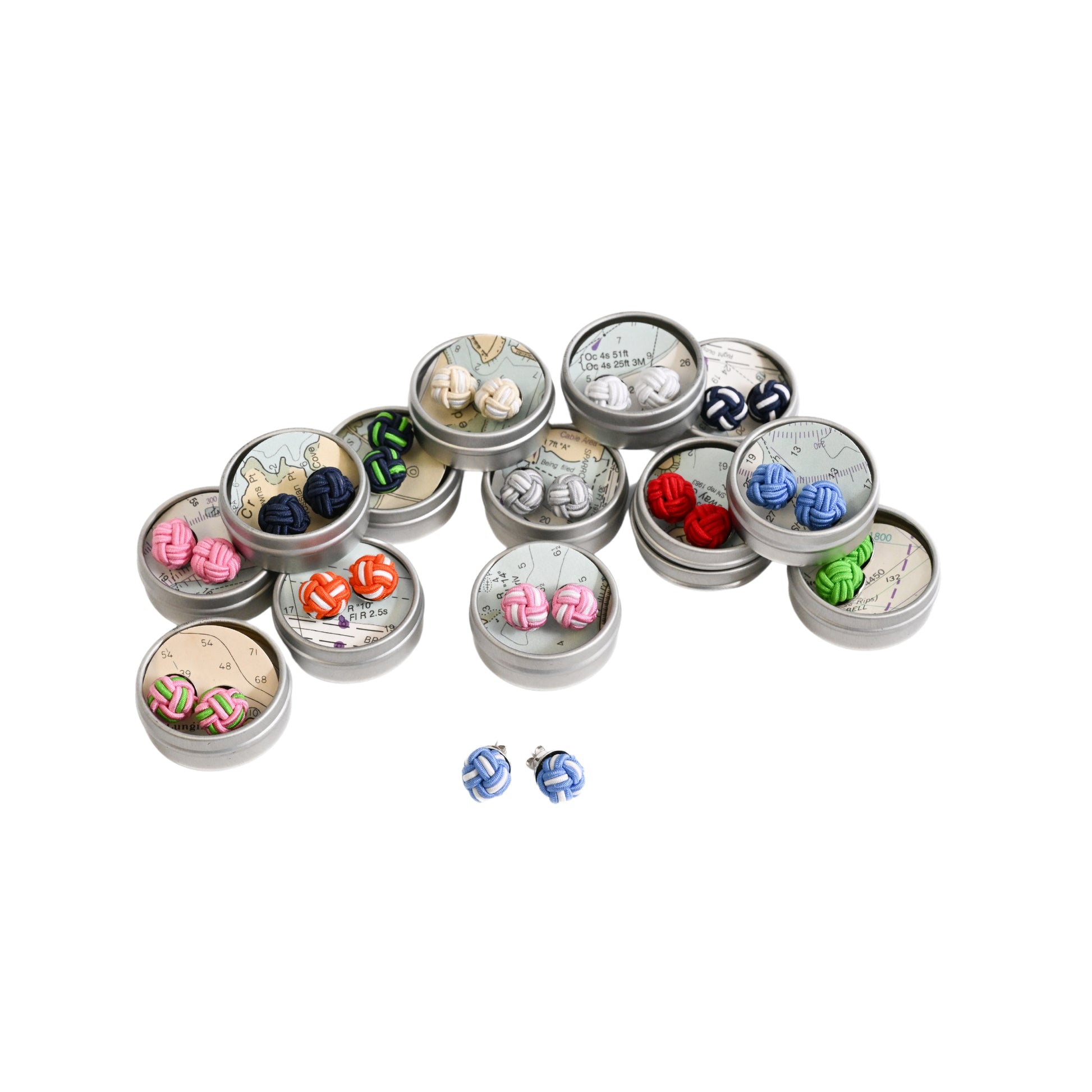 Our Monkey Fist Earrings come packaged in our signature vintage chart lined tin. The monkey fist knot originated in the 1800s as a practical tool for sailors. Traditionally tied at the end of a rope, it was used as a weight to throw lines between ships or onto docks, ensuring secure mooring. Over time, the knot became a symbol of maritime culture, representing strength, resilience, and the enduring connection to the sea.